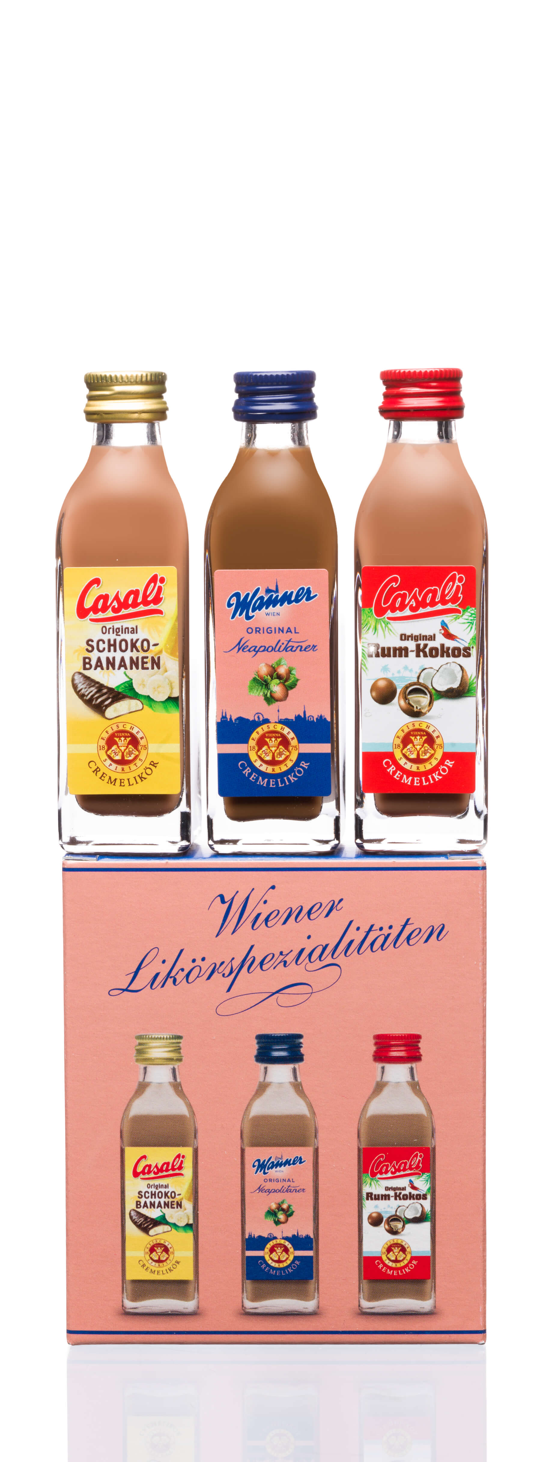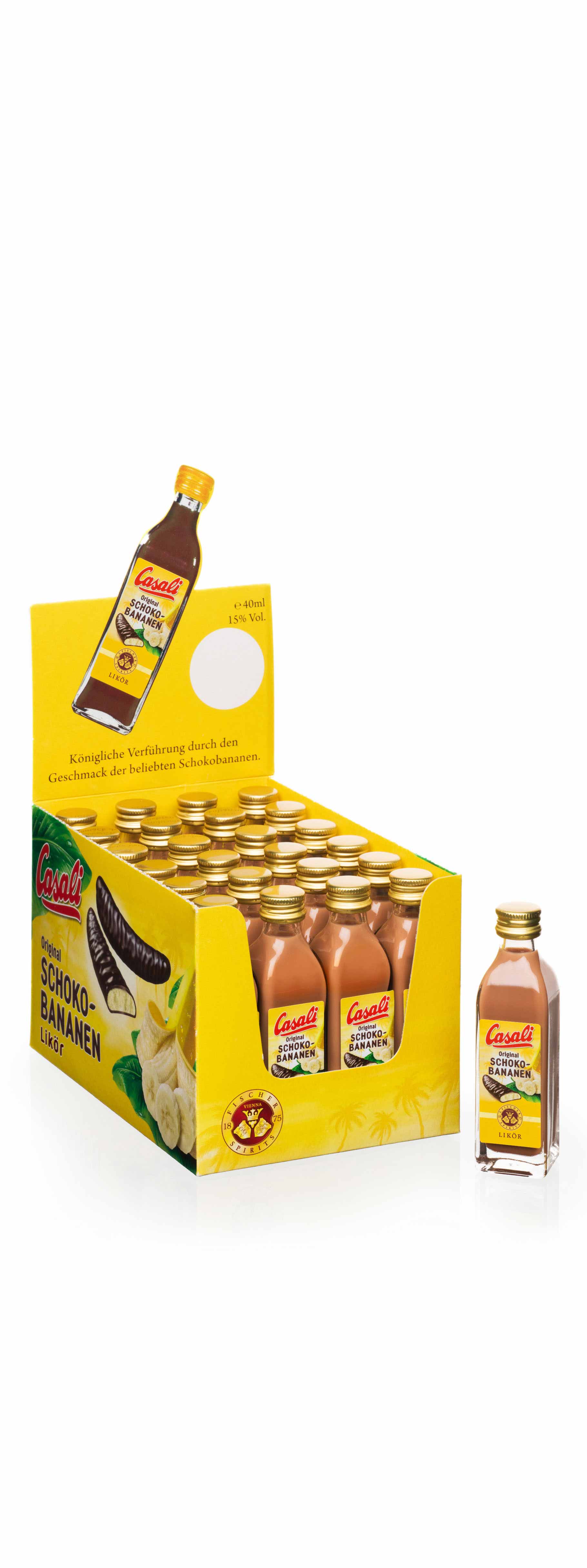 Eine ausgewogene Cremelikörkomposition mit dem typisch-herzhaften Schoko-Haselnussgeschmack der traditionellen Wiener Neapolitaner Waffel. Der Geschmack von Rum, Kokos und Schokolade sorgt – wie bei den beliebten Casali Rum Kokos Kugeln – für das unverwechselbare Karibik-Feeling! Sinnlich-exquisite Komposition mit dem Geschmack feinster Schokolade und Bananen.