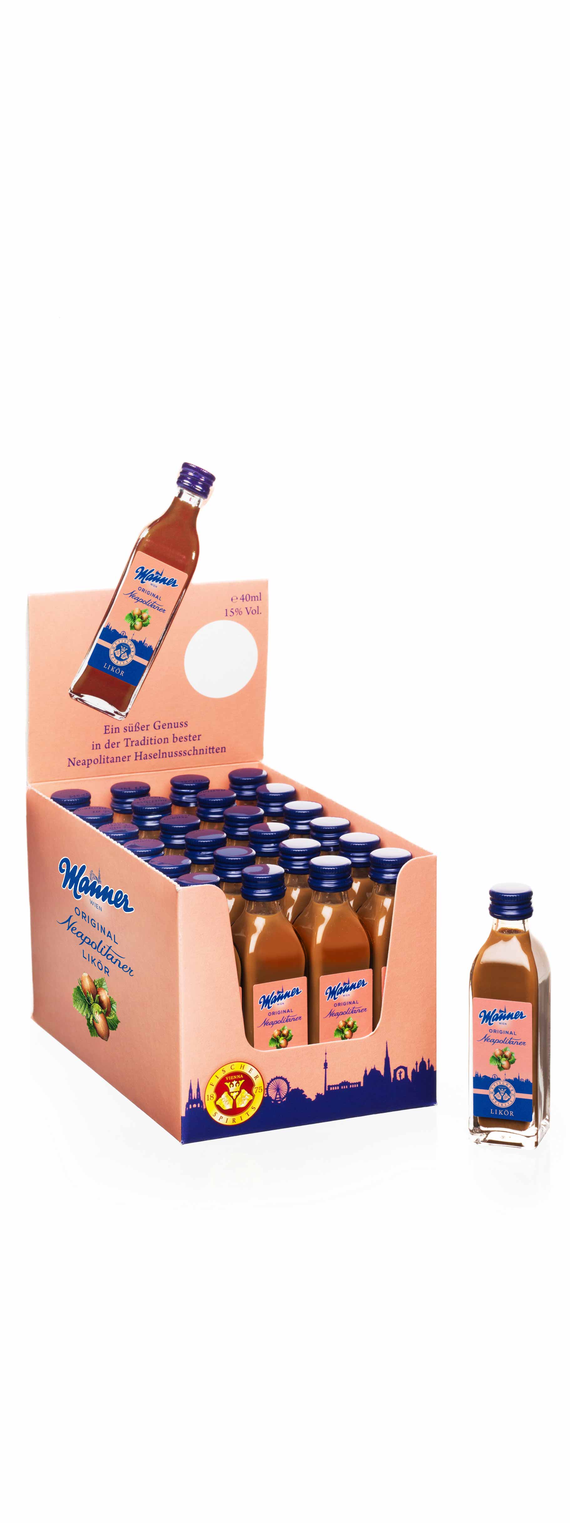 Eine ausgewogene Cremelikörkomposition mit dem typisch-herzhaften Schoko-Haselnussgeschmack der traditionellen Wiener Neapolitaner Waffel. Schmeckt auch köstlich im Kaffee statt Milch und Zucker! Lizenziert von der Firma Josef Manner & Comp. Ag.